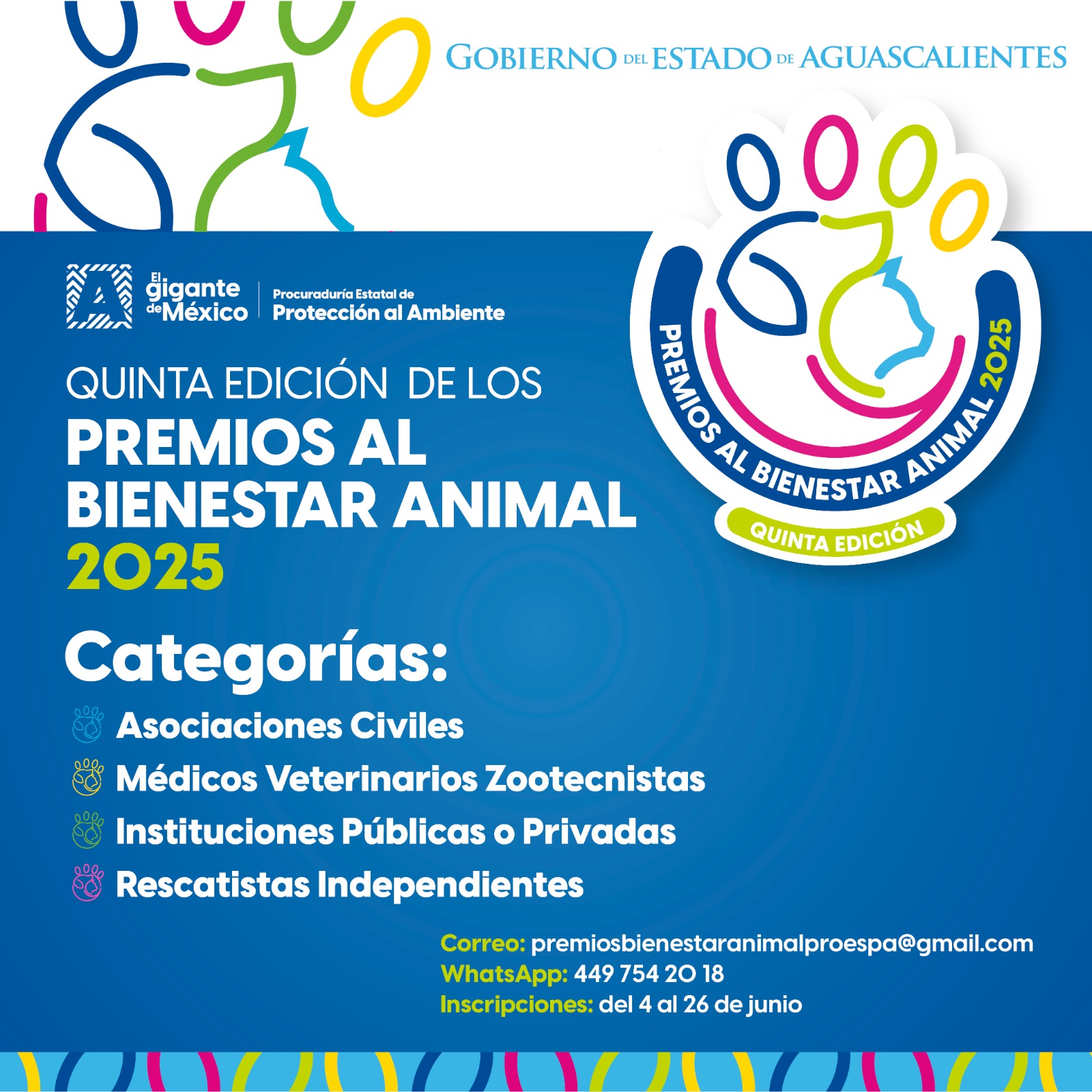 Para postularse u obtener mayores informes, las y los interesados pueden enviar un correo electrónico a premiosbienestaranimalproespa@gmail.com, o vía WhatsApp al número 449 754 20 18.